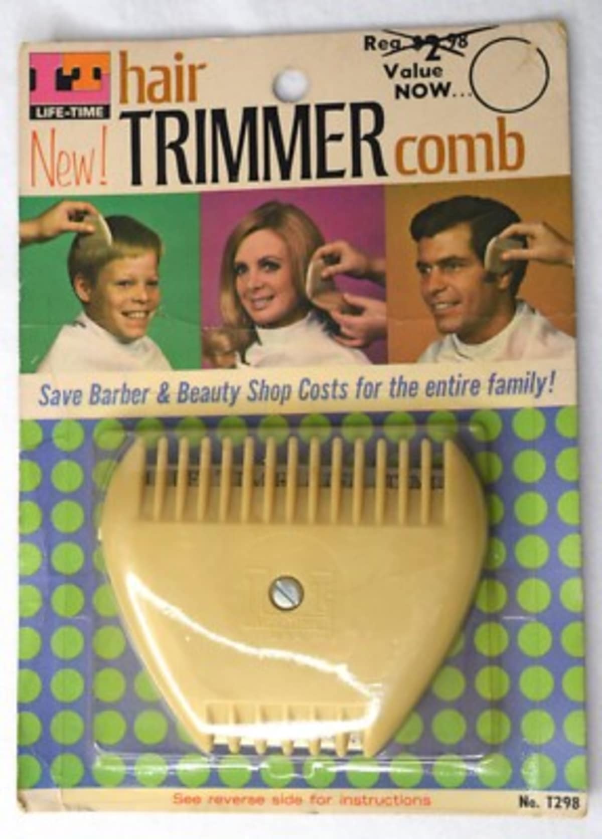 For a brief, and I mean BRIEF period of time, we tried out the “Hair Trimmer Comb” (see accompanying photo). With dual comb and blade action, it claimed to “Save Barber & Beauty Shop Costs for the Entire Family!” It was a bust. The gimmick failed to deliver.
